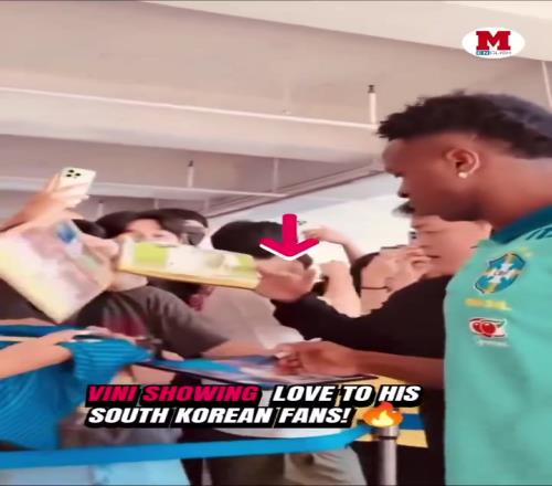 人气很高!维尼修斯巴西队训练之前为球迷签名